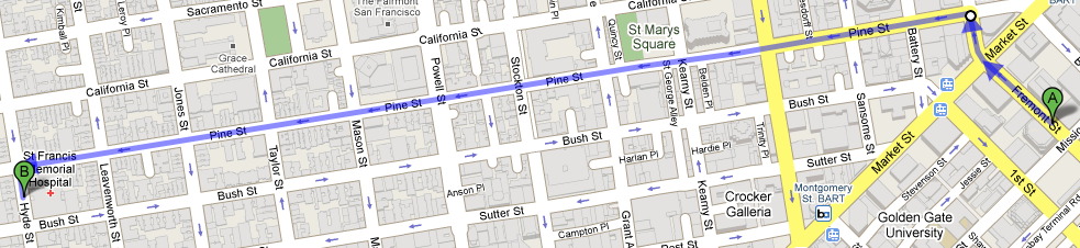 It took 27 minutes to walk from my customer's office building to the hospital. It is only 1.2 miles, but if you've ever walked up Pine from Front to Hyde, you know it is quite a hike.