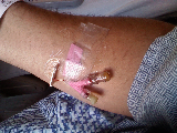 Shortly after I checked in a nurse took me into an exam room and started taking my vitals. Again, this process could have been so much faster had the hospital been equipped with our gadget. Bluetooth enabled blood pressure, EKG, heart monitor and O2 sensors could have been attached to me, and their information would immediately be added to my Electronic Medical Records. Other than inserting the IV and drawing blood, my nurse's full attention could have been on me, the patient rather than hand writing information from the various sensors onto my paperwork.